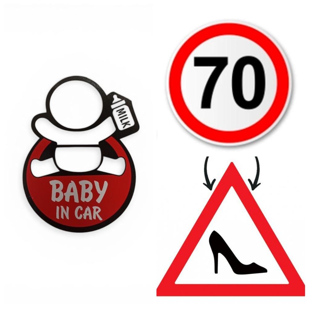“Набір наліпок ХоКо для водія-початківця на скло авто, Дитина в авто, Обмеження швидкості 70, Туфля