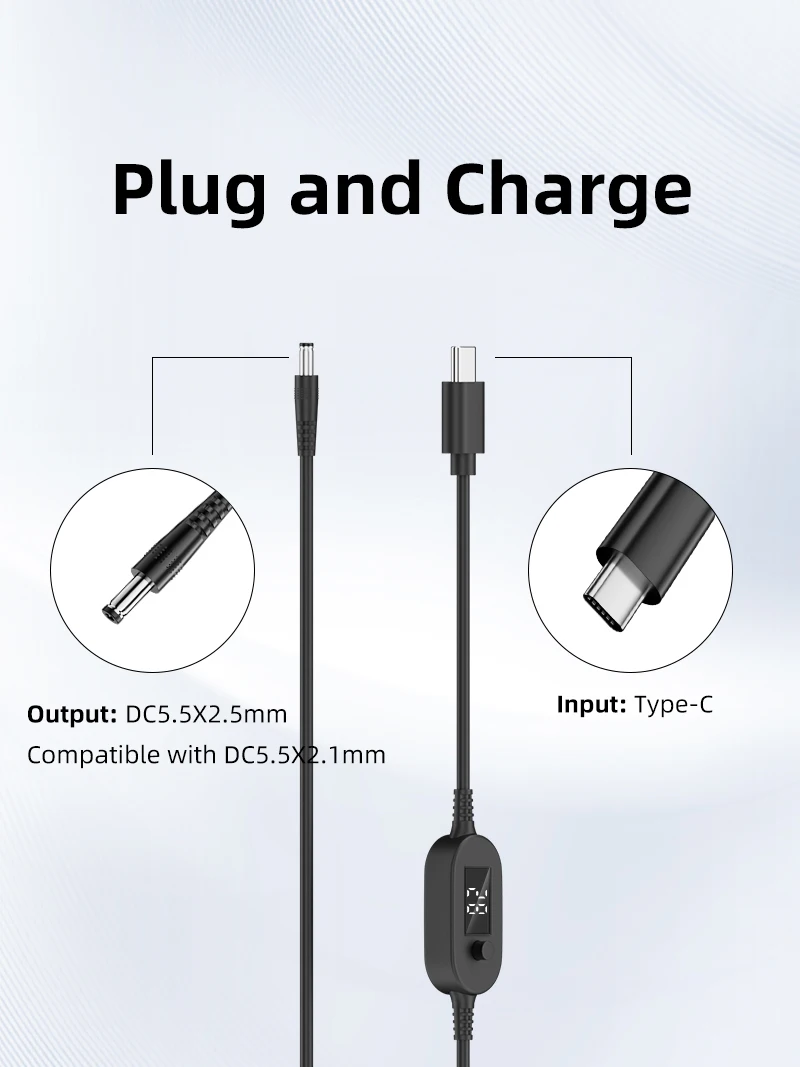 Тип підключення: USB Type-C → DC 5.5×2.5 мм